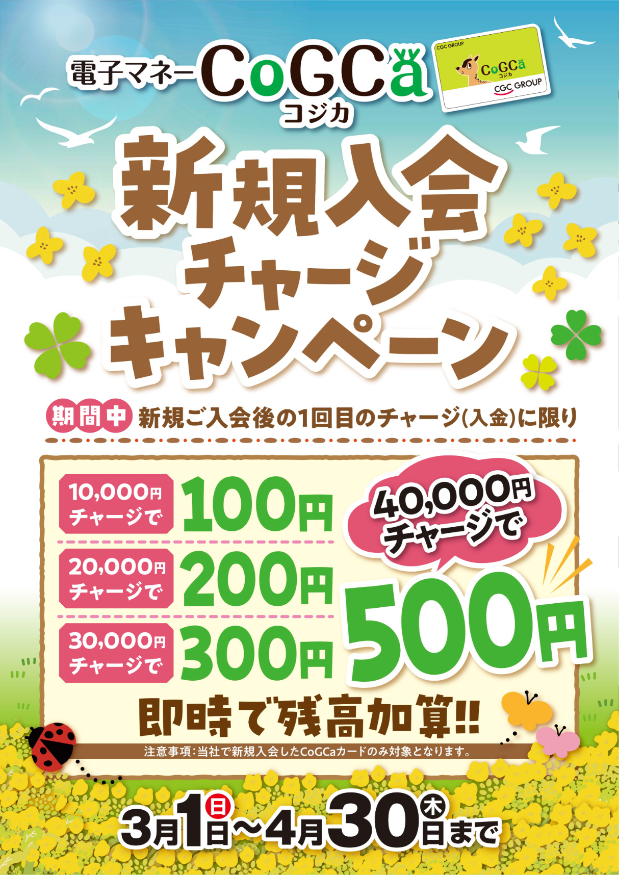 CoGCa新規入会チャージキャンペーン 3月1日(日)~4月30日(木)
