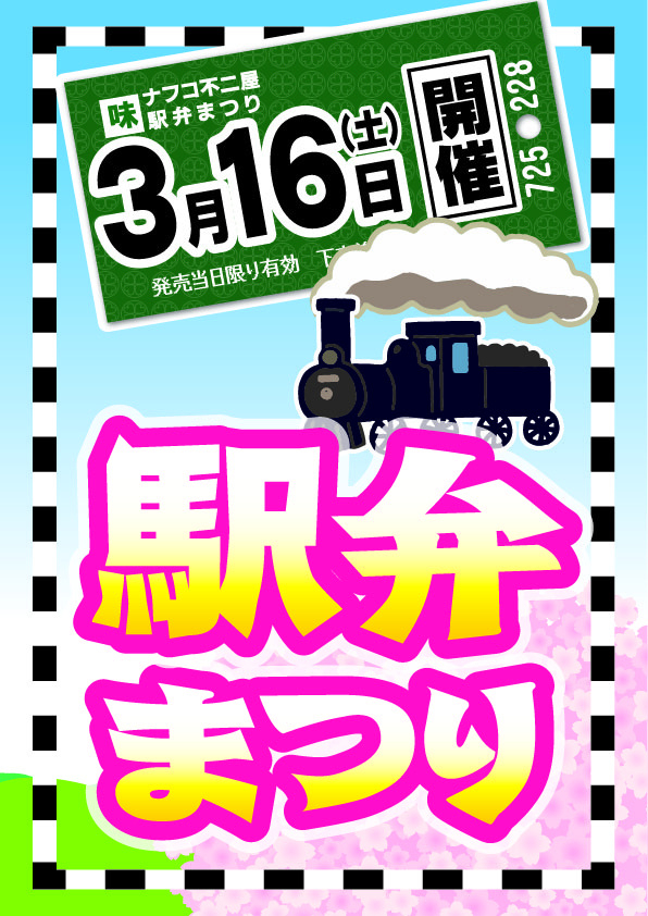 2024年02月28日(水) 3月16日(土)日本全国駅弁まつり 日本全国駅弁まつり開催です。北海道から九州まで各地の有名駅弁をご用意いたします。 すこし桜には早いですが、駅弁を持って外で食べるのも良い物ですよ。