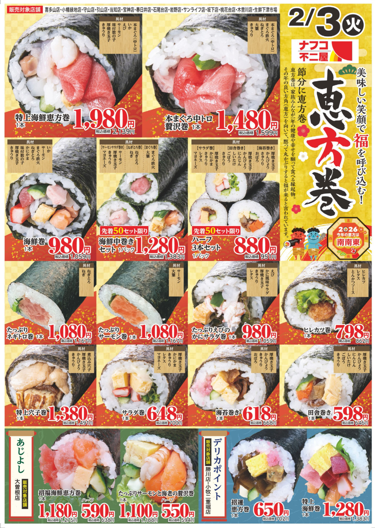 2026年 不二屋の恵方巻ご予約承り中