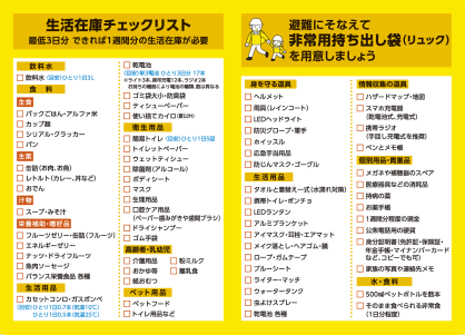 「生活在庫」のチェックリストを活用し、日頃の在庫を確認しよう。