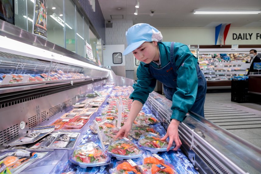 鮮魚担当 飲食店顔負けの種類のお魚を捌くので、一番技術が身に付く人気の部門です。 お刺身の盛り合わせも作ります。 『旬の魚をいかに綺麗に早く捌くか』が最も難しくやりがいを感じる部分です。 対面取引をやる楽しみもあります。 丸々1匹の鯛を「3枚おろしにして」などの注文もあり、お客様とのコミュニケーションも多いです。