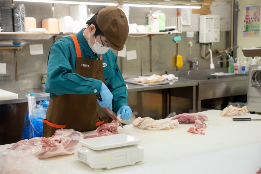精肉担当 日常で欠かすことのできないおいしいお肉をお客様にお届けするお仕事です。 牛・豚・鶏の各部位ごとの特性を覚えることができ、加工の技術が身に付きます。 お肉の仕入れも行います。 どのお肉をどれくらい仕入れればいいかを考え、判断します。