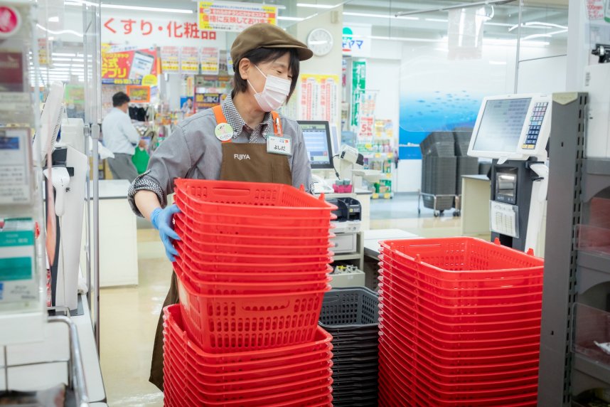 レジ担当 お客様との距離が一番近い、ナフコ不二屋の最前線に立つのがレジ担当です。 お客様のお買い物をバーコードで集計する他に、お客様からのお問い合わせにも対応します。 レジ周りの整頓も行います。 仲の良いお客様と日常会話をしながら楽しく働けるのは、レジ担当の特権! 一番のやりがいは、お客様からの感謝の言葉を直接聞けることです。